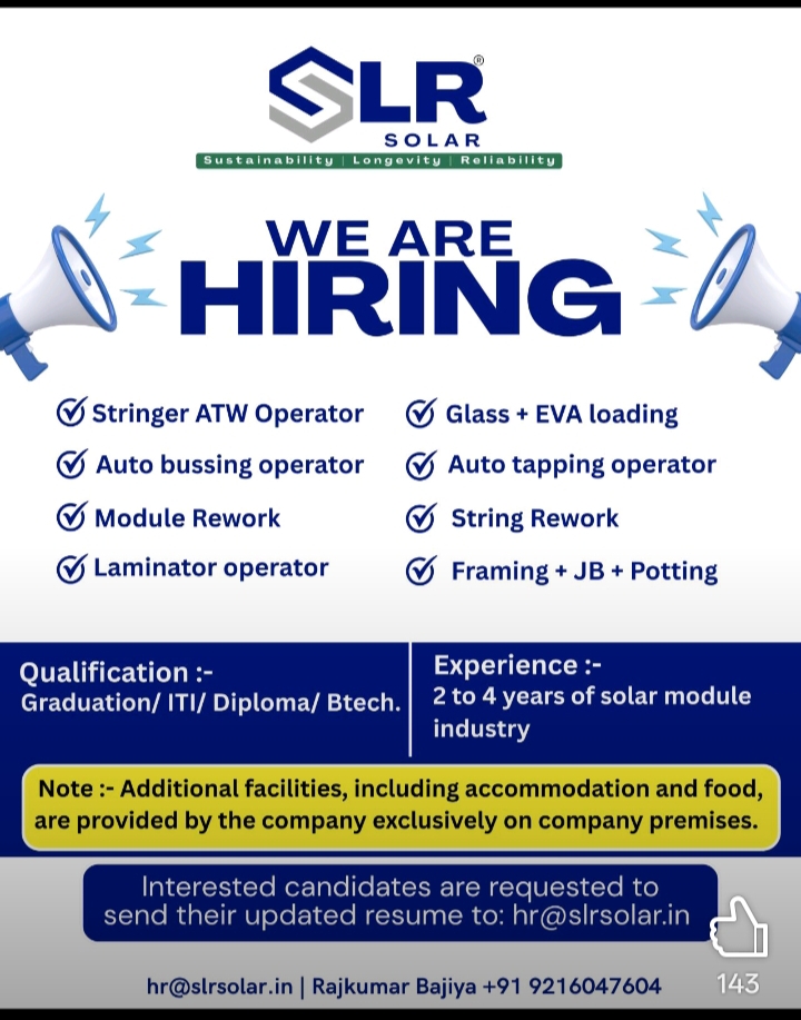 SLR Solar Pvt Ltd me Job Vacancy 2026 – Solar Module