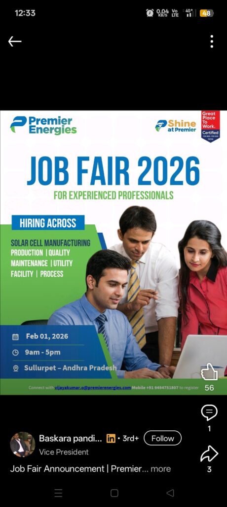 Premier Energies Job Fair 2026 | Solar Manufacturing Jobs in Andhra Pradesh